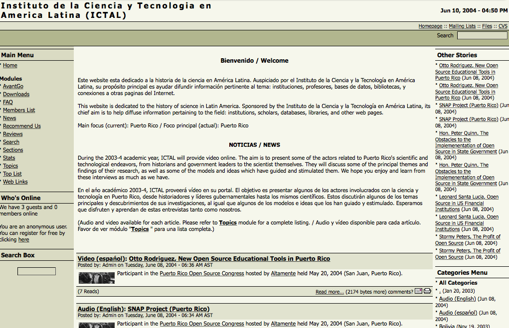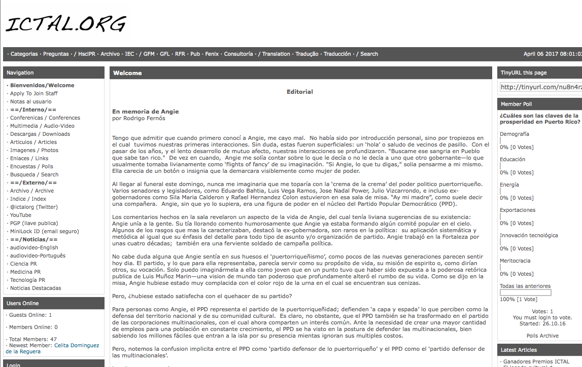 Aunque empezamos con iconos de la flora y fauna puertorriqueña como iconos temáticos ('Categories'), en un punto los modificamos a las fotografías de líderes ilustres que trágicamente habían fallecido en el pasado reciente, desde la política (David Noriega), la academia (Mara Negrón) y la comedia (Luis Raul). El portal llego a tener 544 enlaces, enfocándose en listados de archivos digitales y, más importante aun, medidas de protección en el mundo cibernético.